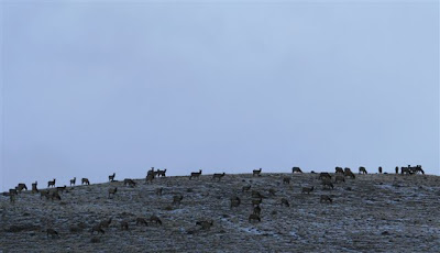 Saturday morning and it has been a while since I have gotten out except for climbing the hill above the house where I have enjoyed glassing and keeping track of a number of elk herds I have spotted in the hills above town. I am now having a hard time finding any of them. We have had no snow this month to speak of but it has been very windy and remained quite cool. Most of the wildlife are high up on wind blown slopes including the deer that I had been finding so easily. I did watch a herd of antelope some miles away and was surprised to find them so high up and far back. My artist friend, Les had called me a week ago to tell me that quite a herd of them had moved through his place about a week ago. I am sure this is the same bunch.